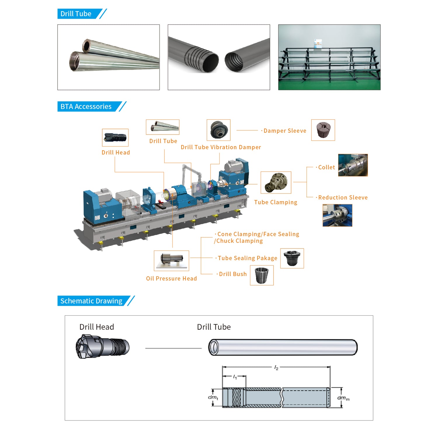 In order to provide customers with more efficient and convenient services, we have set up large warehouses in China, United States, Germany, India to stock large number of BTA drill tubes, BTA drill heads, counter boring heads, trepanning tools, skiving/roller burnishing tools, vibration dampers and Boza pressure heads.