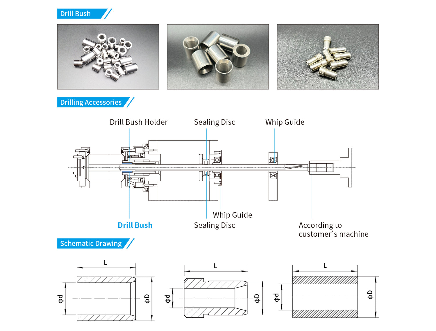 HTT specializes in making high-precision drilling accessories. We have large inventory for drill bushes, drill bush holders, whip guides, sealing discs and other tool accessories. All parts can be customer-made. The tolerance is as little as ± 0.005mm, the smallest ID can be 0.3mm. They are for metal, mold, medical equipment, aerospace and other industries.